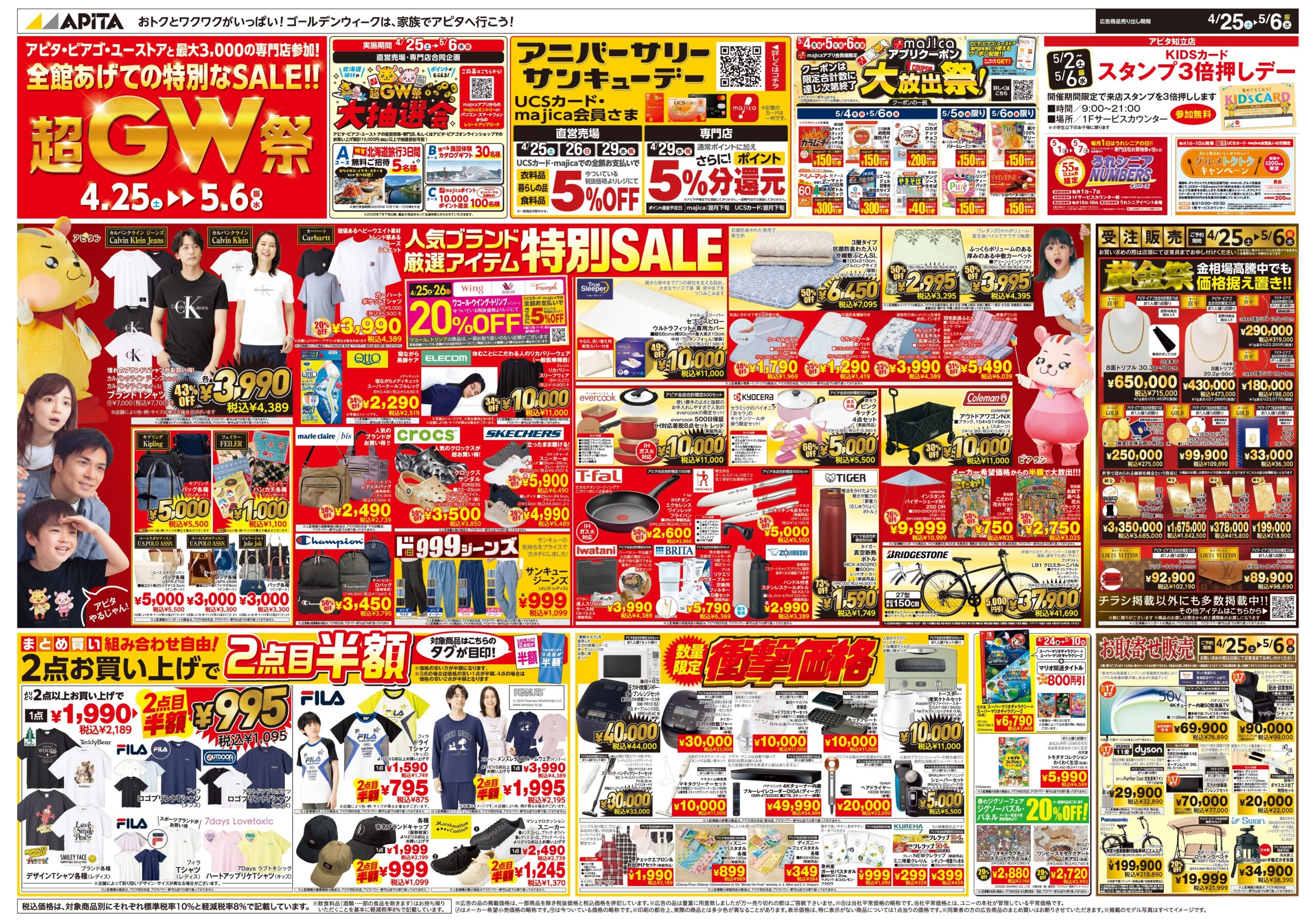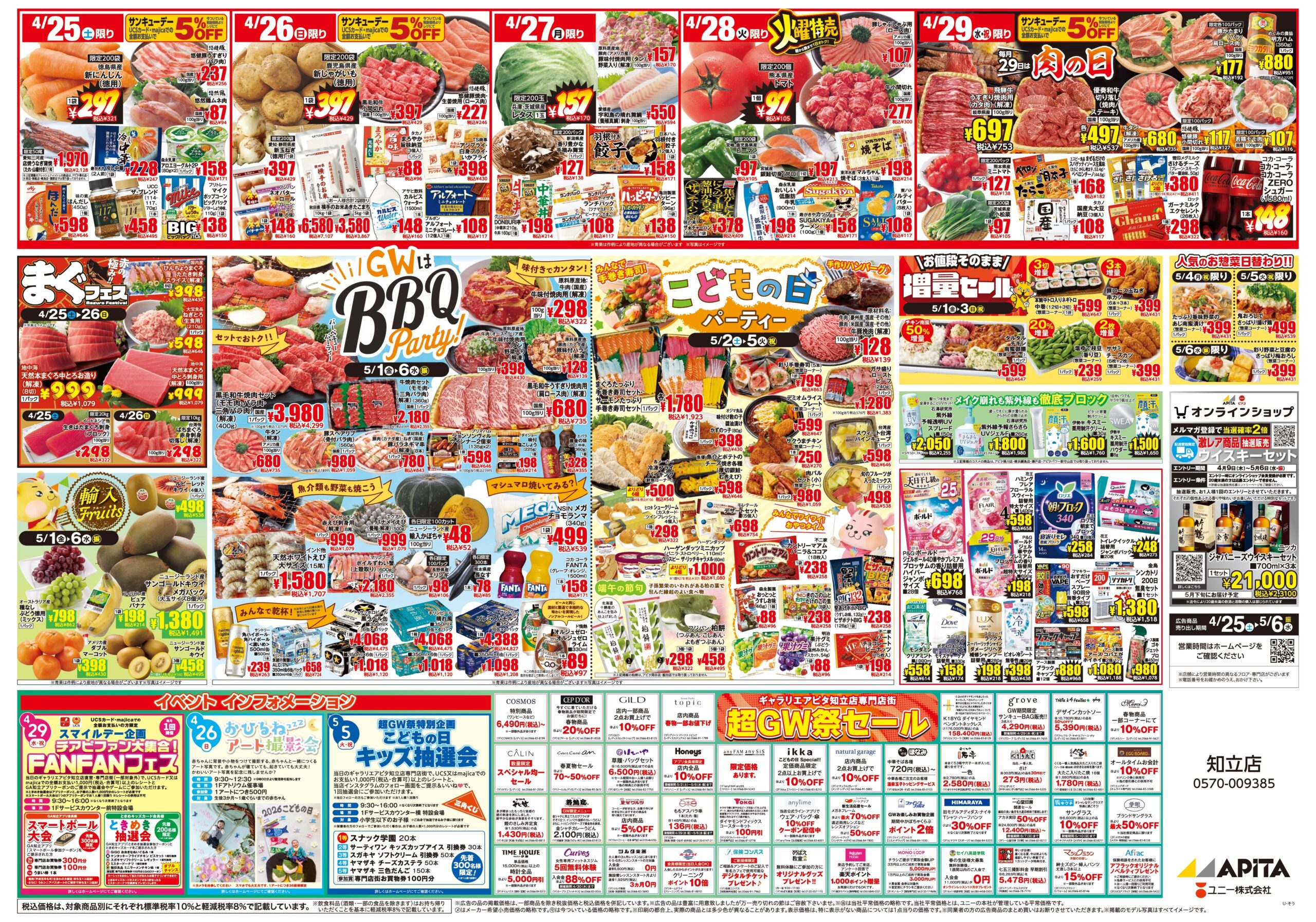 アピタ知立店では4月25日(土)から5月6日(水・振)の期間中、超GW祭を開催! 全館あげての特別なSALE!! またお得で楽しいイベントやキャンペーンも盛りだくさん♪ この機会にぜひギャラリエアピタ知立店へお越しください。