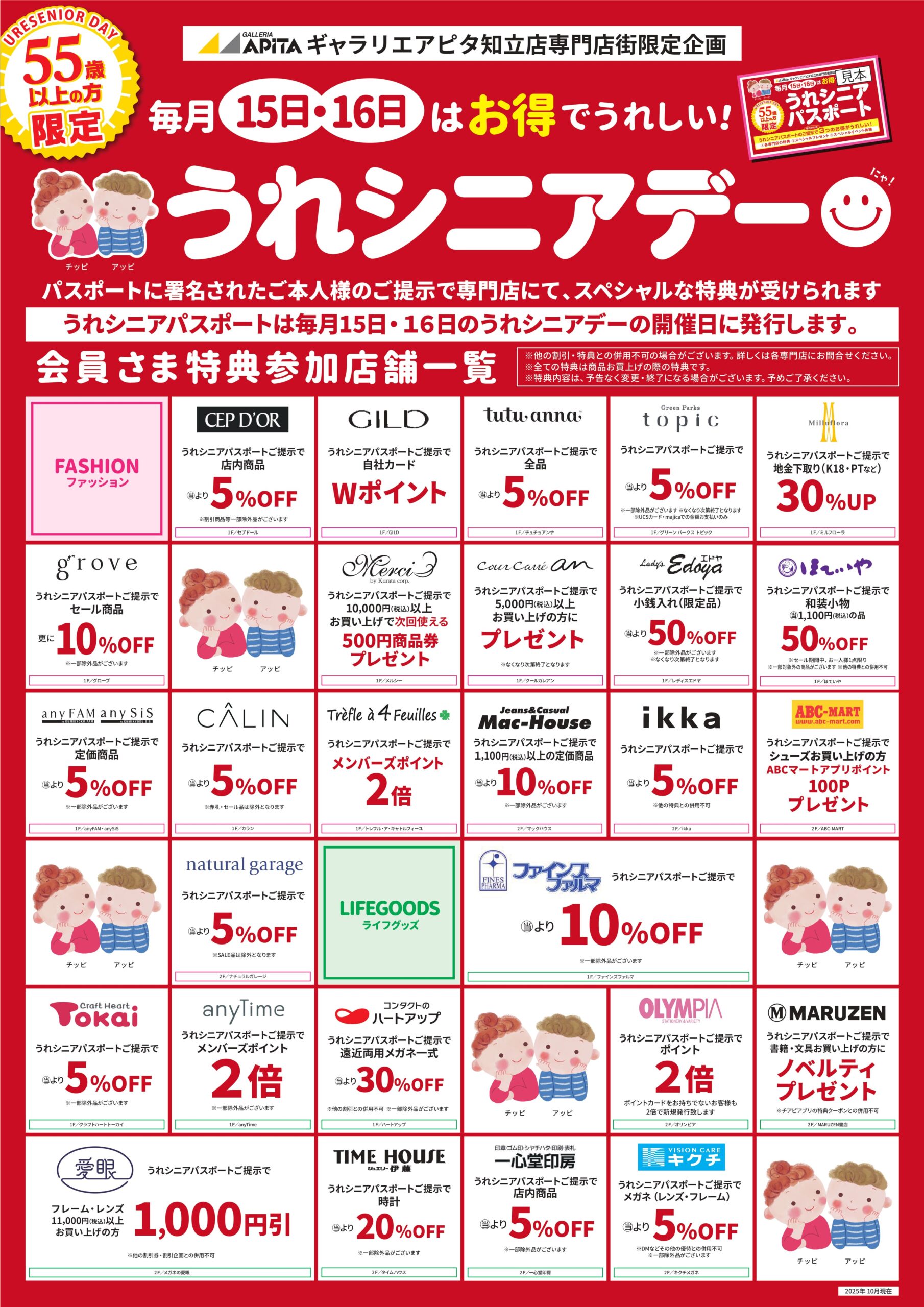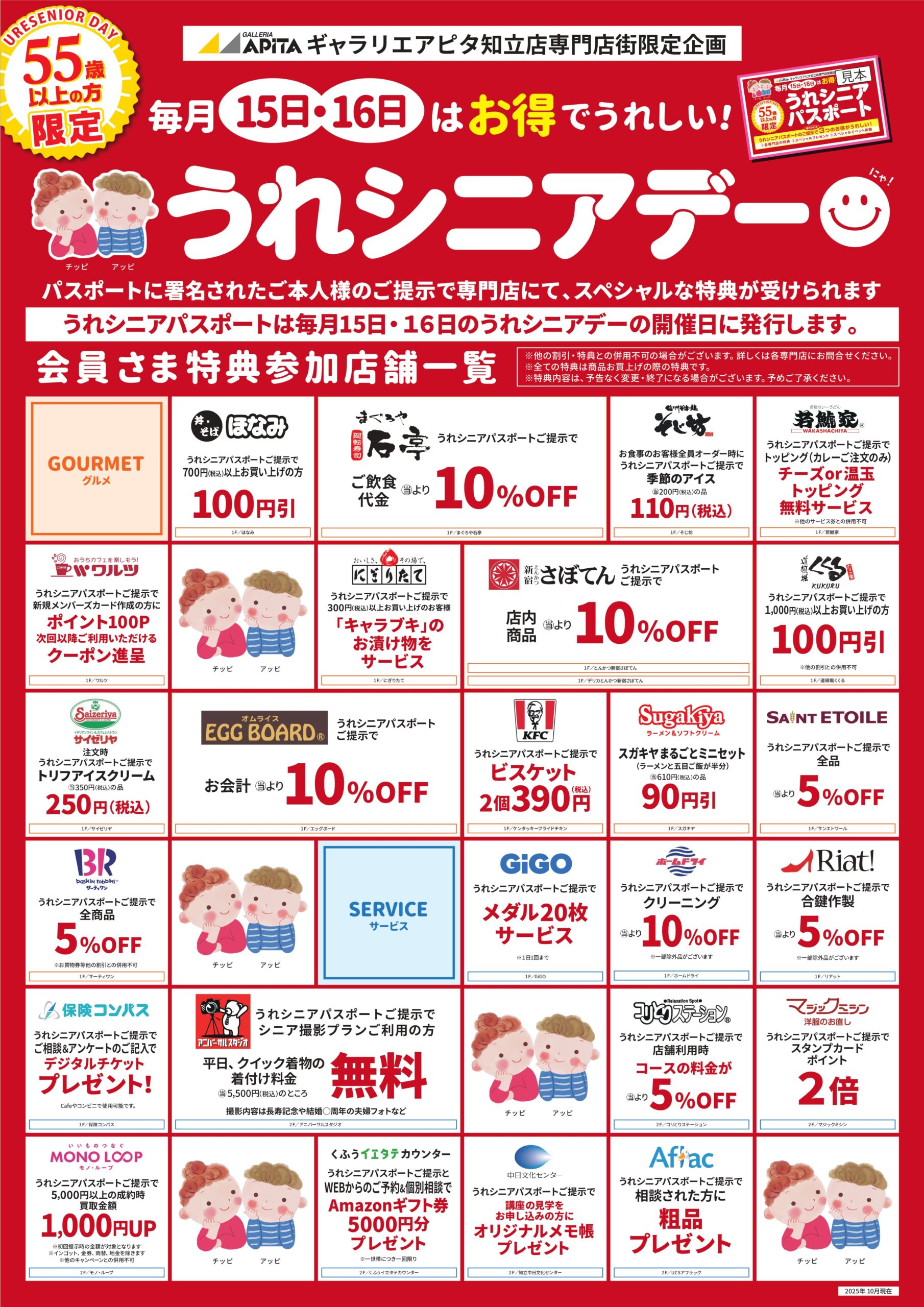 <55歳以上の方限定>毎月15日・16日はお得でうれしい!うれシニアデー