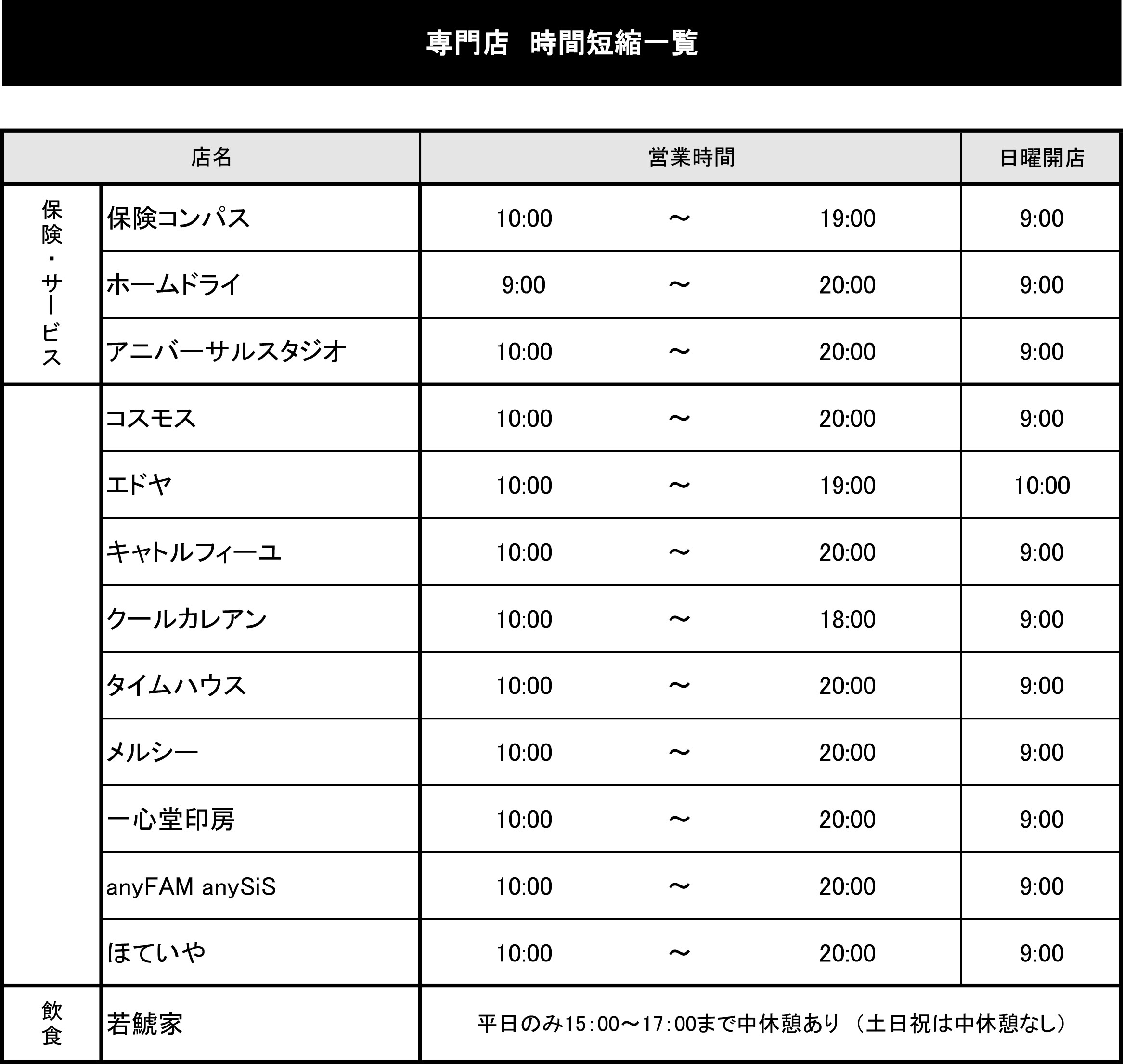 一部専門店において、営業時間短縮をさせて頂きます。