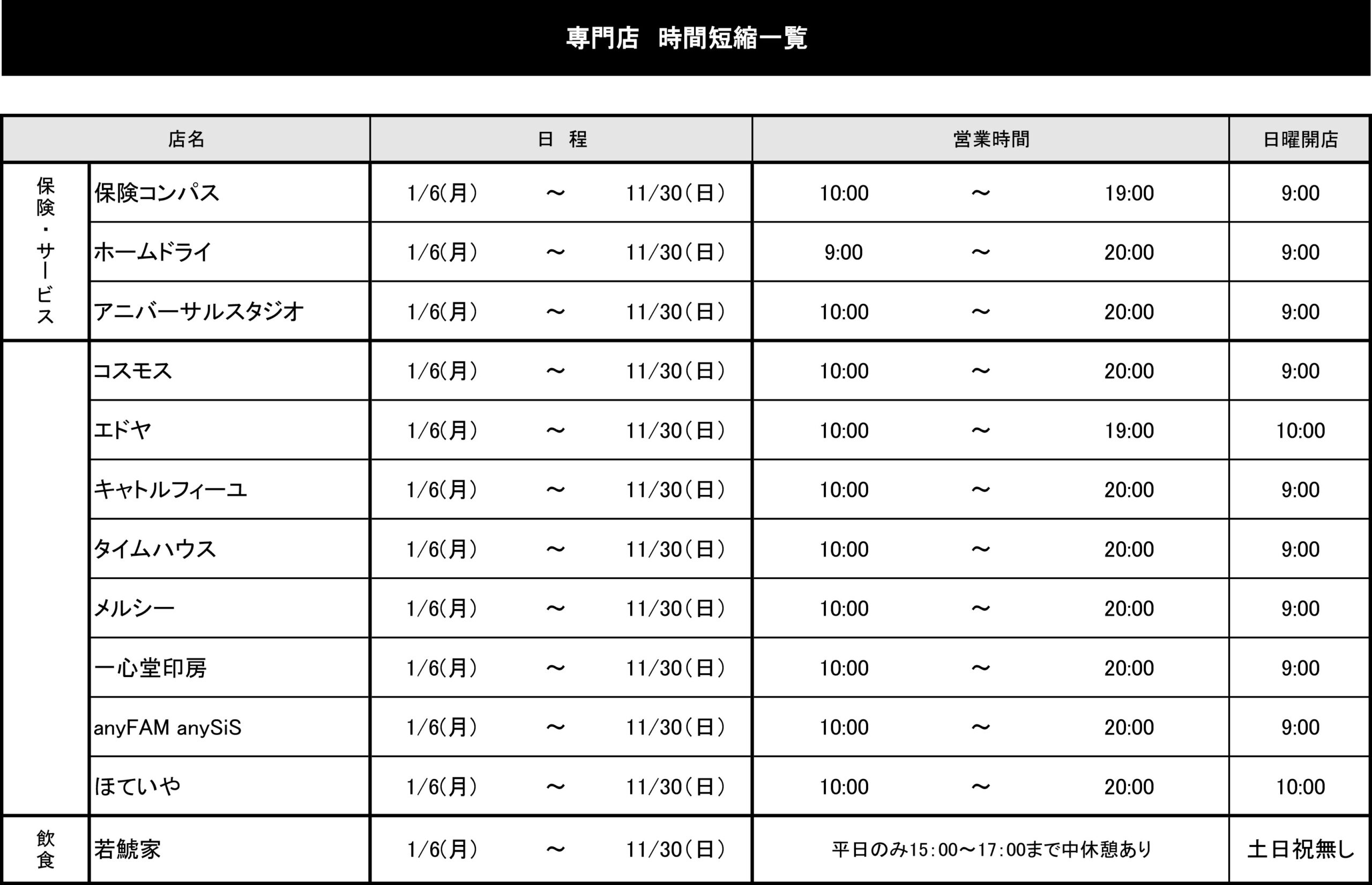 ◆ギャラリエアピタ知立店 一部専門店 営業時間短縮のお知らせ◆