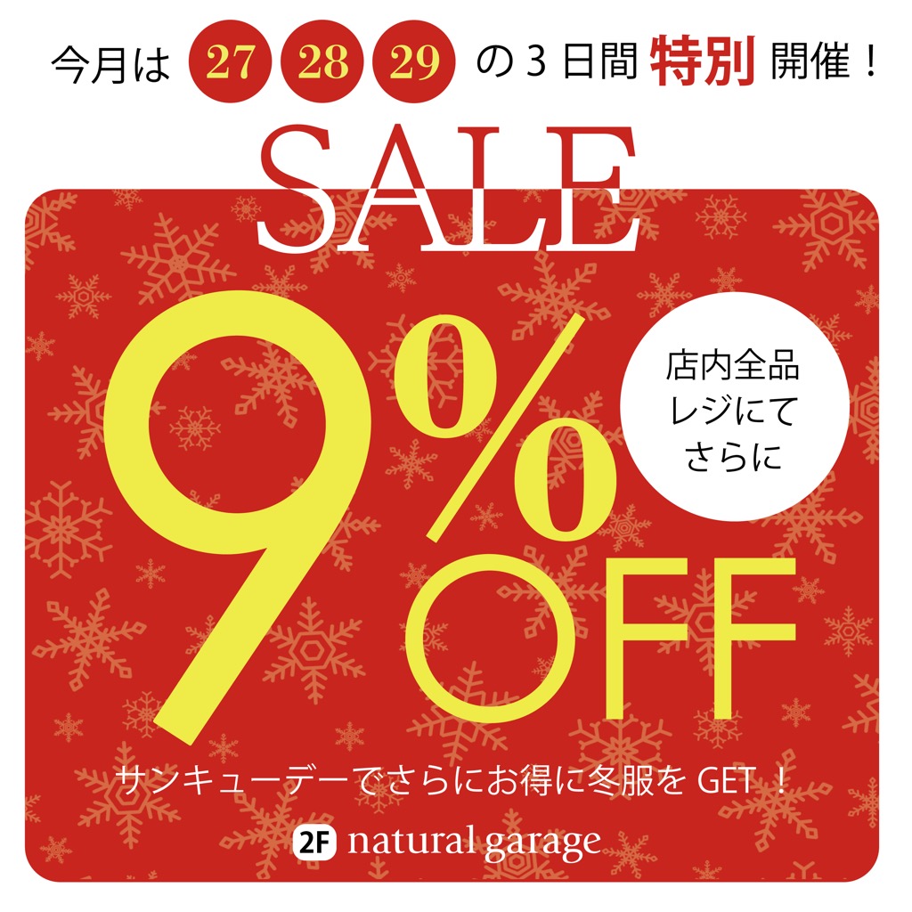 <natural garage>店内全品さらに9%OFF★SALE商品もさらにお得な3日間!! -