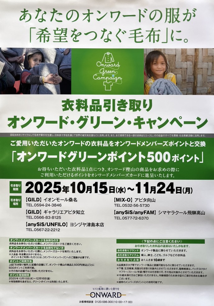 衣料品引き取り「オンワード・グリーン・キャンペーン」開催中