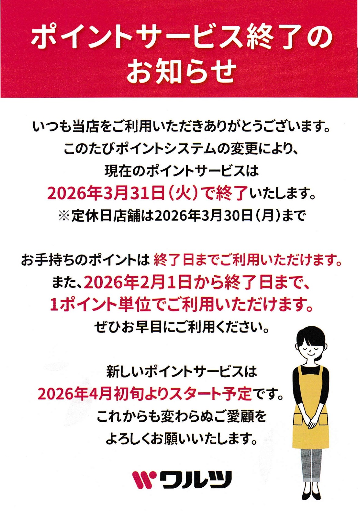 このたびポイントシステムの変更により、現在のポイントサービスは
