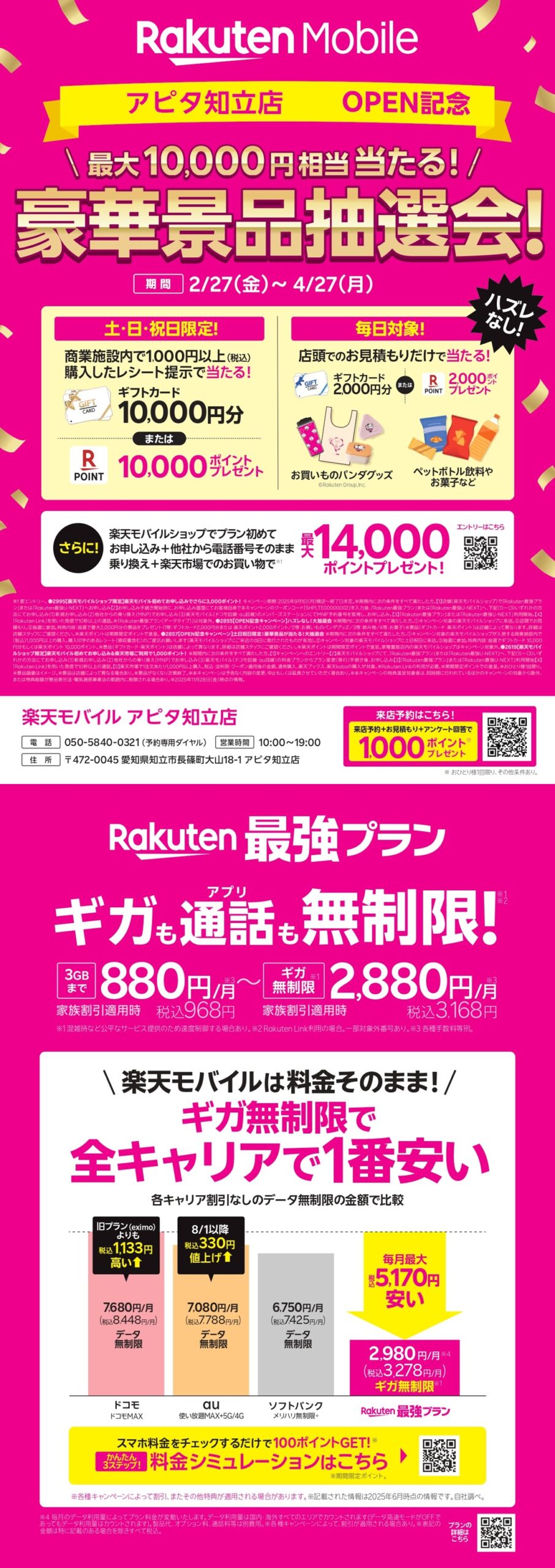 2月27日(金)楽天モバイルが、ギャラリエアピタ知立店1FにNEW OPEN!